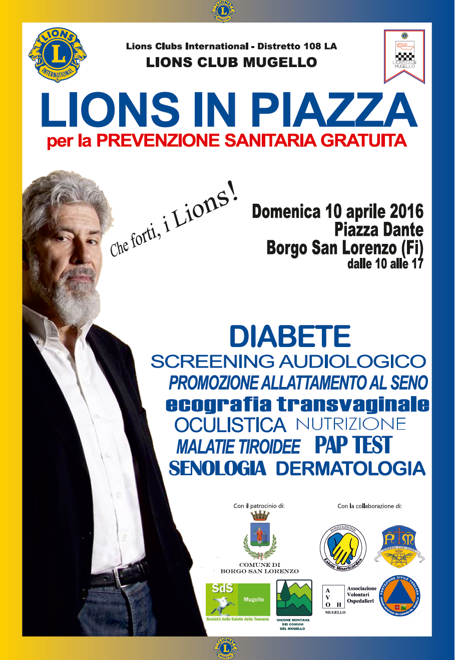 lions in piazzaDedichiamo la nuova puntata di Salute Mugello all’iniziativa “Lions Day – Medici in Piazza”, organizzata in collaborazione con la nostra fondazione ed in programma per l’intera giornata del 10 aprile in Piazza Dante.  Ascolta la nuova puntata di Salute Mugello